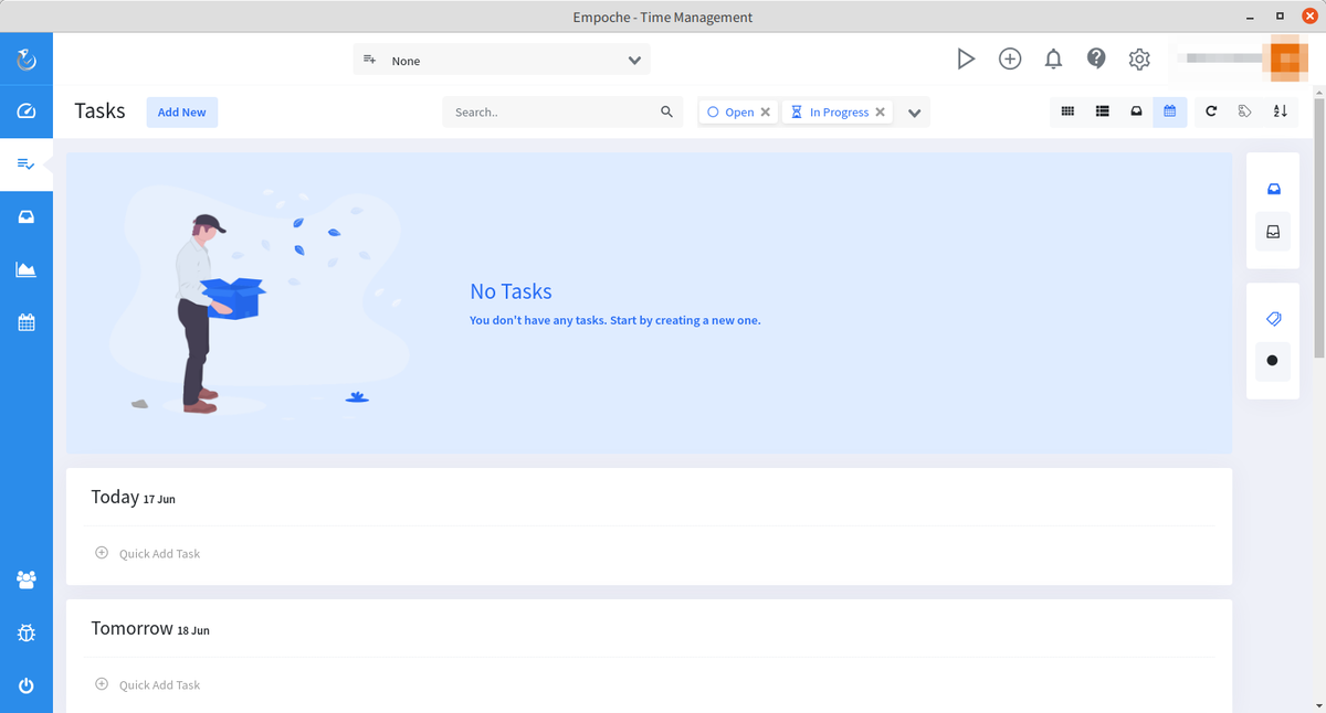 タスク画面はこんな感じ。まだ何もタスクを入れていません。