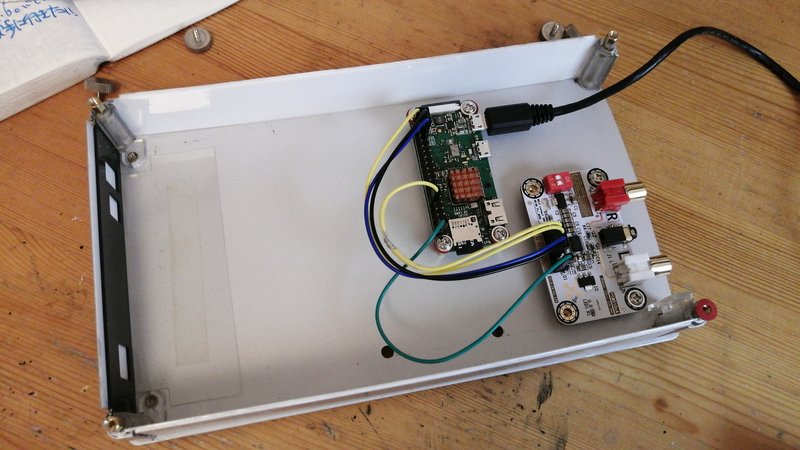 150mA ただ今回はバスパワーでUSB-DACを動かす関係で、USB-Type Cに給電できるACアダプタ使っています。ケーブルが対応してるかどうかはよくわかりません。まあ対応してるから音が出てるんだろうな。 ただし上記の接続は、ボリューム付きヘッドホンアンプを流用しているのでいまいちしっくり来ません。収まりが悪い。そこでラズパイに接続するUSB-DACのボードを購入しました。なんかしらんけどI2Sとかいう経路で出力するらしいです。 なにかケースがあったほうがいい、ということで余っていた外付けハードディスクをばらしてケースだけ使うことにしました。アルミの筐体に電動ドリルで穴を開けてスペーサーをかまして、raspberryPiとDACボードを設置。rasberryPiにはヘッダピンがすでに装着されているので、はんだ付けなしで接続して無事に出力完了。設定画面にはUSB-DACを選ぶところがあるのですが、HiFiBerryDACみたいなやつを選んでおきました。当てはまるやつがなかったし、ググったらだいたいこれでなんとかなるみたいな雰囲気だったので。 ケースの大きさに対する、パーツの小ささがすごい。ただいい感じで固定できてアンプの隣に並べることを考えたらこれでいいのだ! 裏側は必然的にこうなります。 こんな感じに仕上がりました。ただし本来のケースの厚みが足りなかったので、側面の板をプラバン切り出しで作成、シルバーで塗装というアホみたいなこともしています。 あと背面は電源コードとか出るので開放状態。 いままでBluetooth接続だったので、それとくらべると雲泥の差ですな。音がくっきりびっちり出ている感じがあります。 ただ、最初Spotify使えていたのに途中から使えなくなったのはくやしいところ。使えているときも挙動が怪しかったので、まあしょうがないかなと思いますが。(いまは無事使えています) あとタグ情報で音楽を整理しているので、タグをちゃんと打っていないとアルバム選択画面とかがとっちらかるので注意。私はタグの整理をはじめたのをきっかけに、昔のCDをリッピングし直して気がついたら1週間過ぎてしまいました。時間に追われている人は後回しにしたほうがいいです。 スマホのアプリは、純正ではなくVolumioControllerというやつのほうがサクサク動きます。あとVPNかましているとVolumioが見えなくなるので、VPNの設定でVolumioControllerを除外しておく必要があります。 Spotifyが安定して使えれば最強だなーと思っています。(使えています)